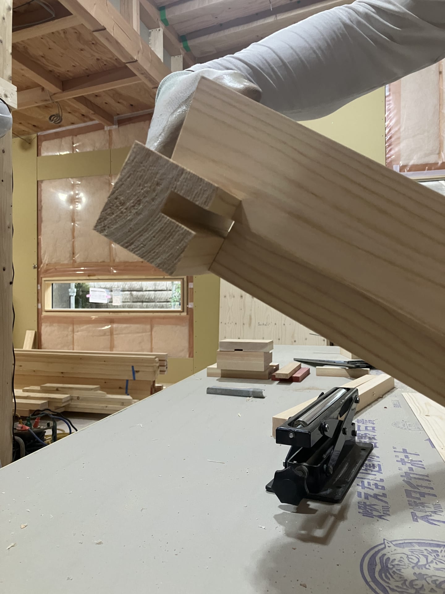 木の性質を知り尽くした大工(古井さん)が、美しく、狂いのない細部を創っていきます。