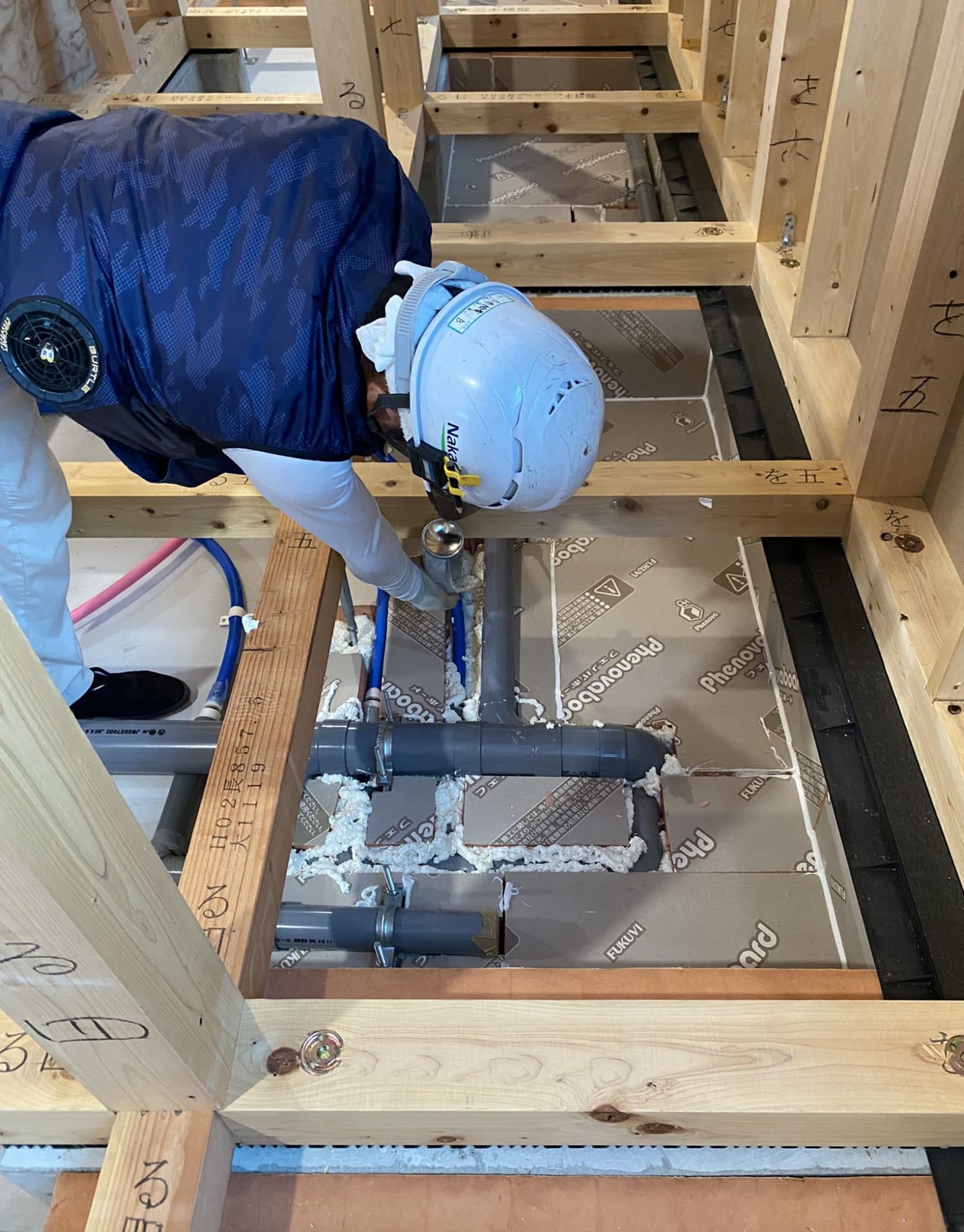 特に配管との取り合いの箇所などは断熱の弱点になりやすいので、入念に作業をしていきます。