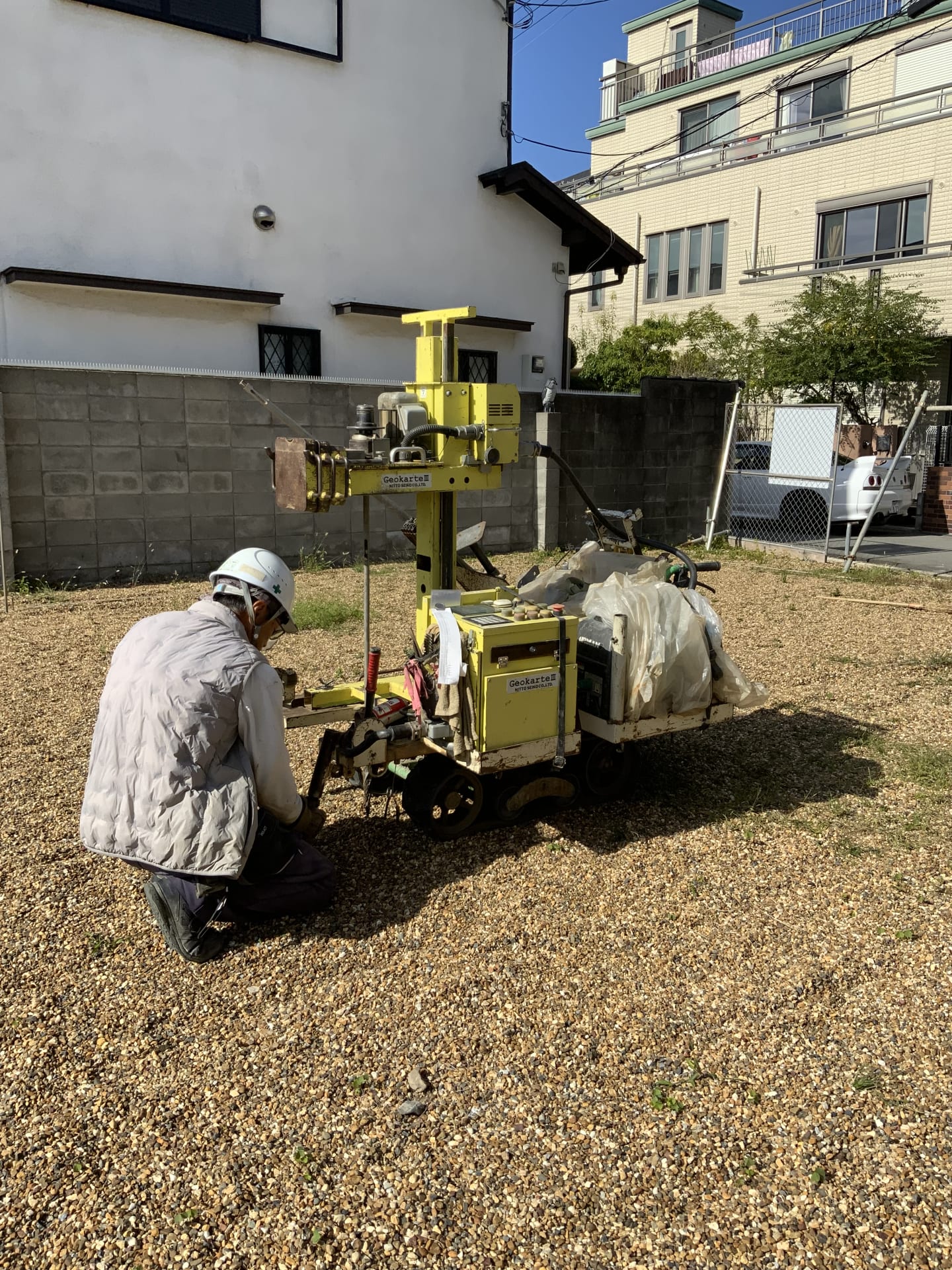 敷地が更地になった状態で地盤の強さを計測します。