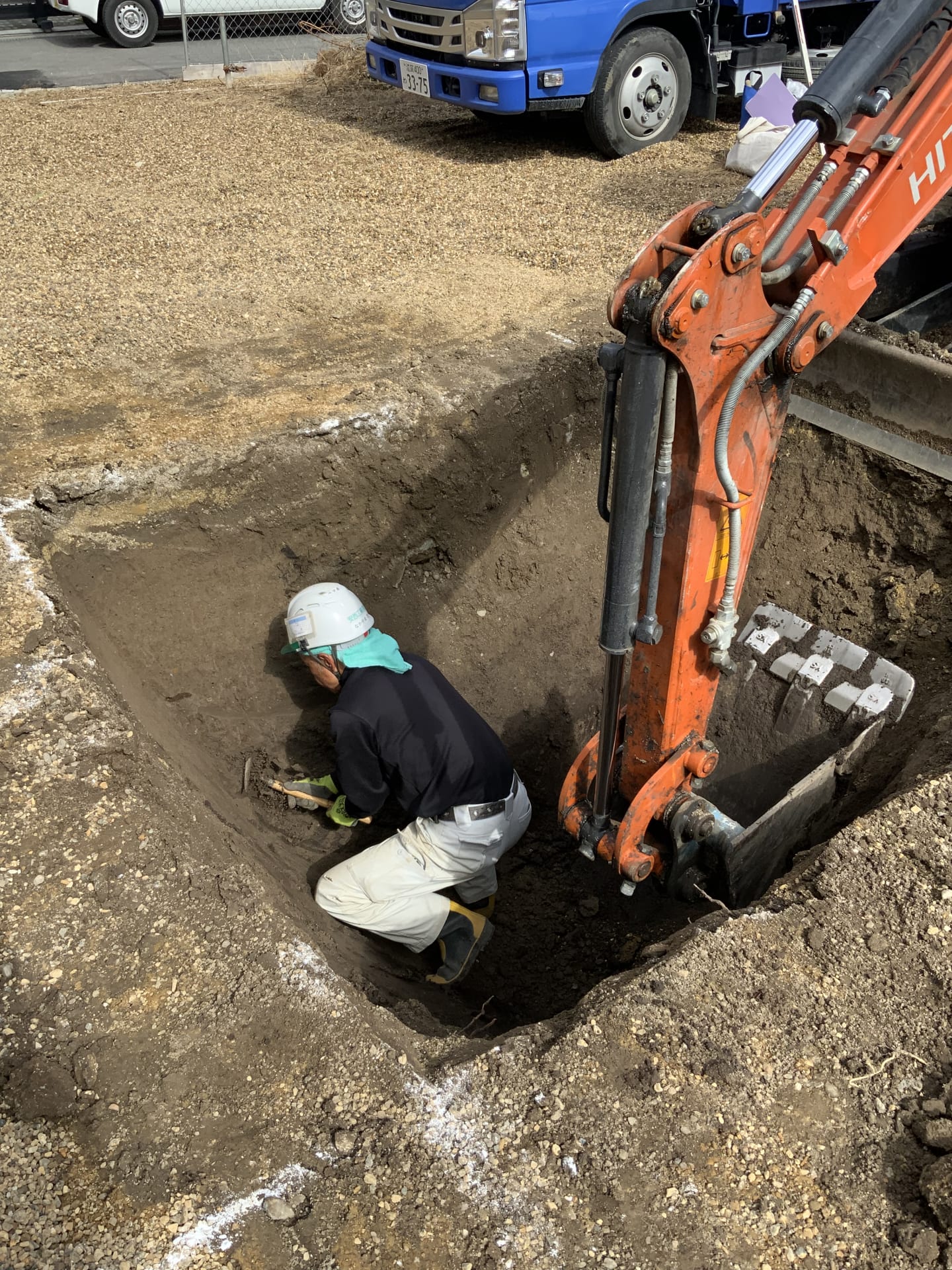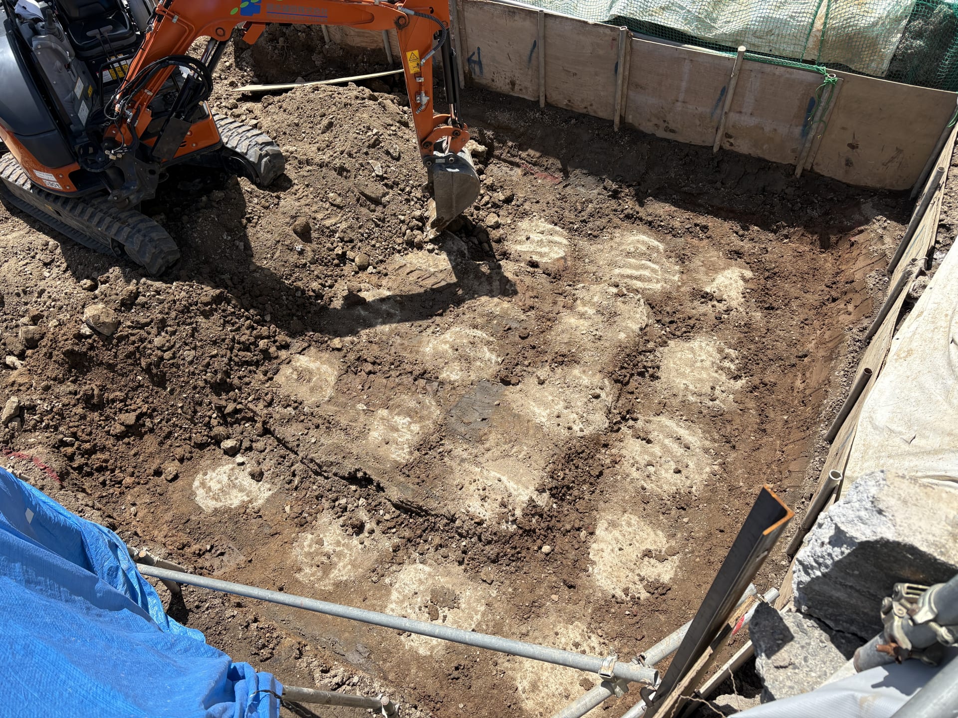 今回は市の方の協力により事前調査で発掘が必要と判ってから、本発掘の完了まで1ヵ月と短い時間でご対応いただきましたが、繁忙期は3ヵ月以上かかることもあるようで、注意が必要です。