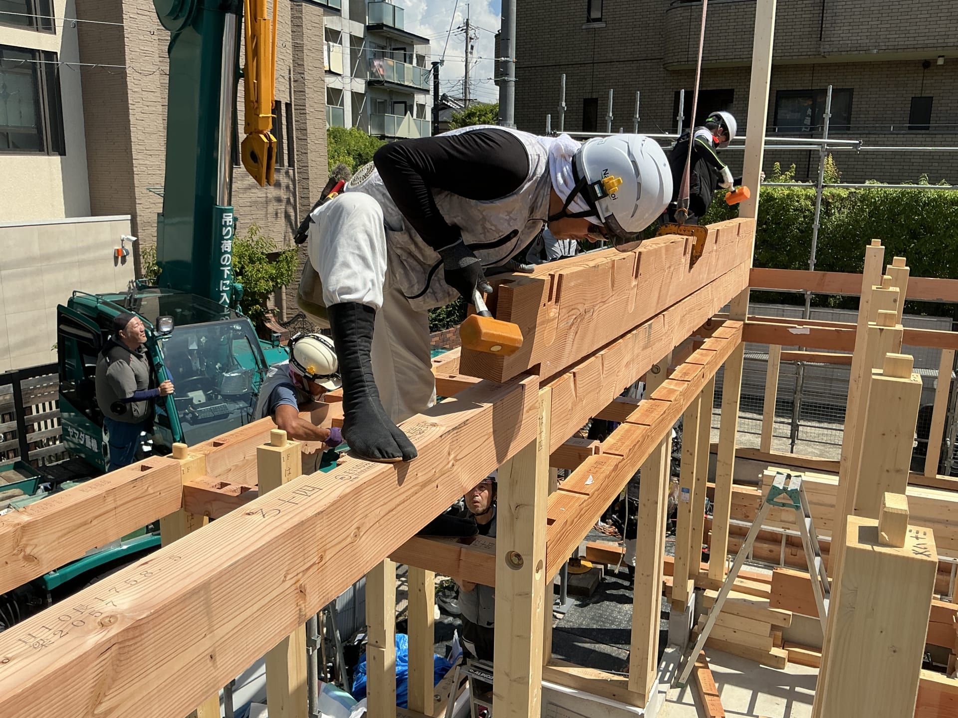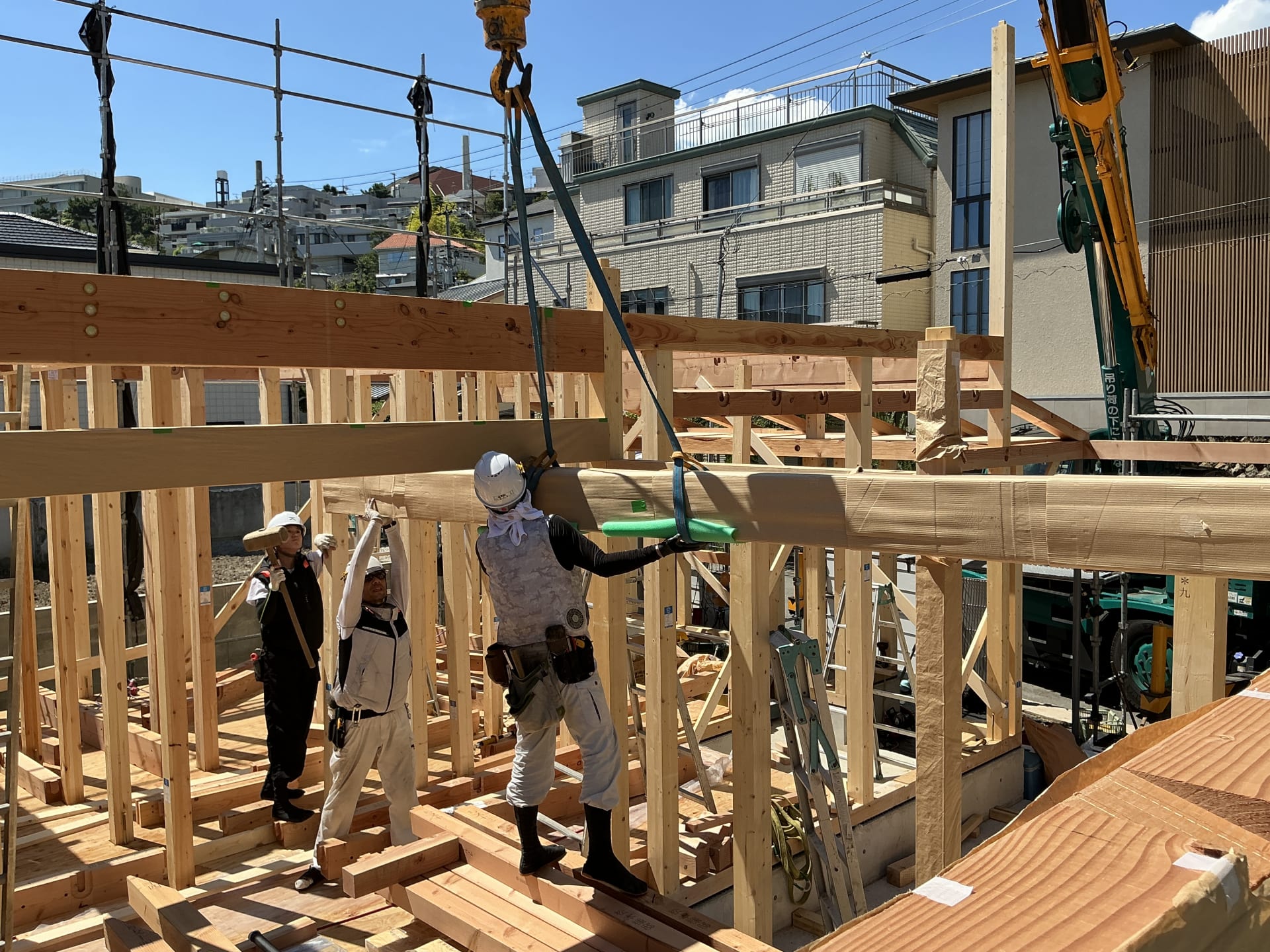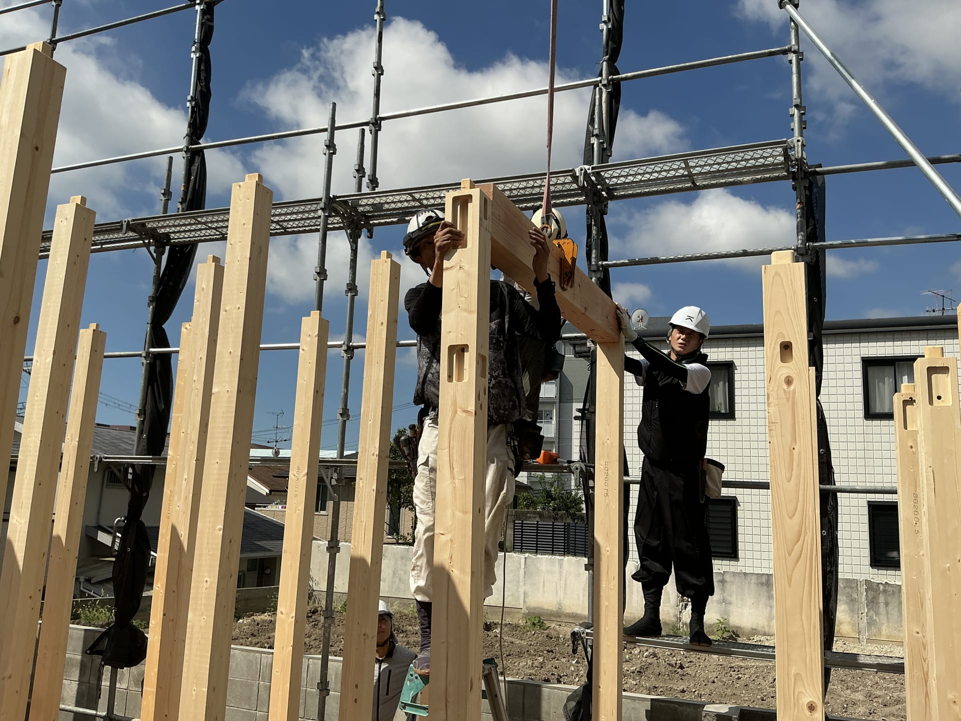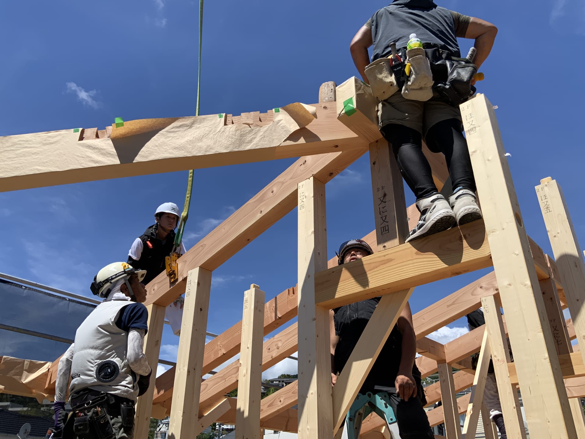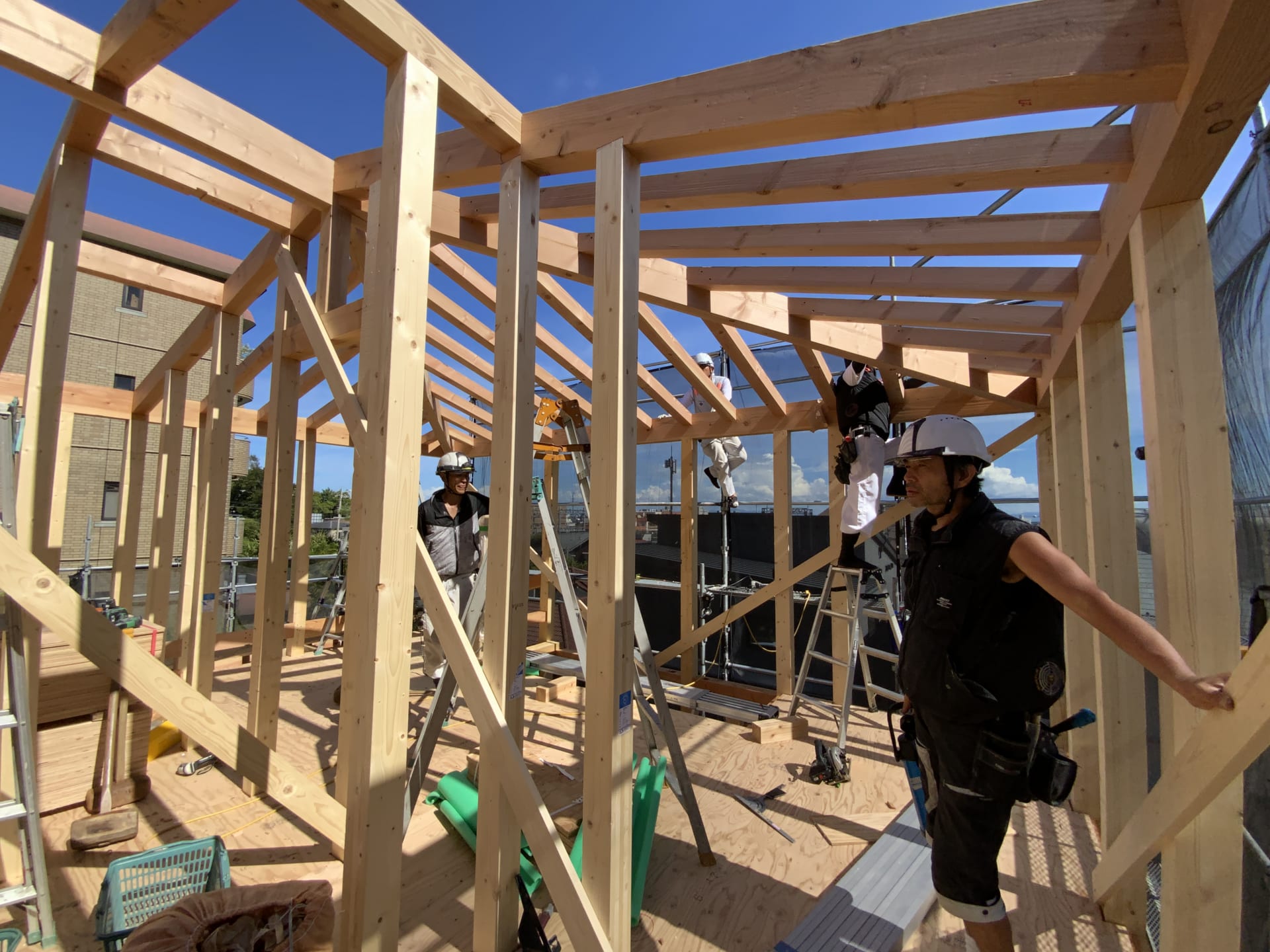 ここまでで数日に及ぶ建て方工事が完了しました。